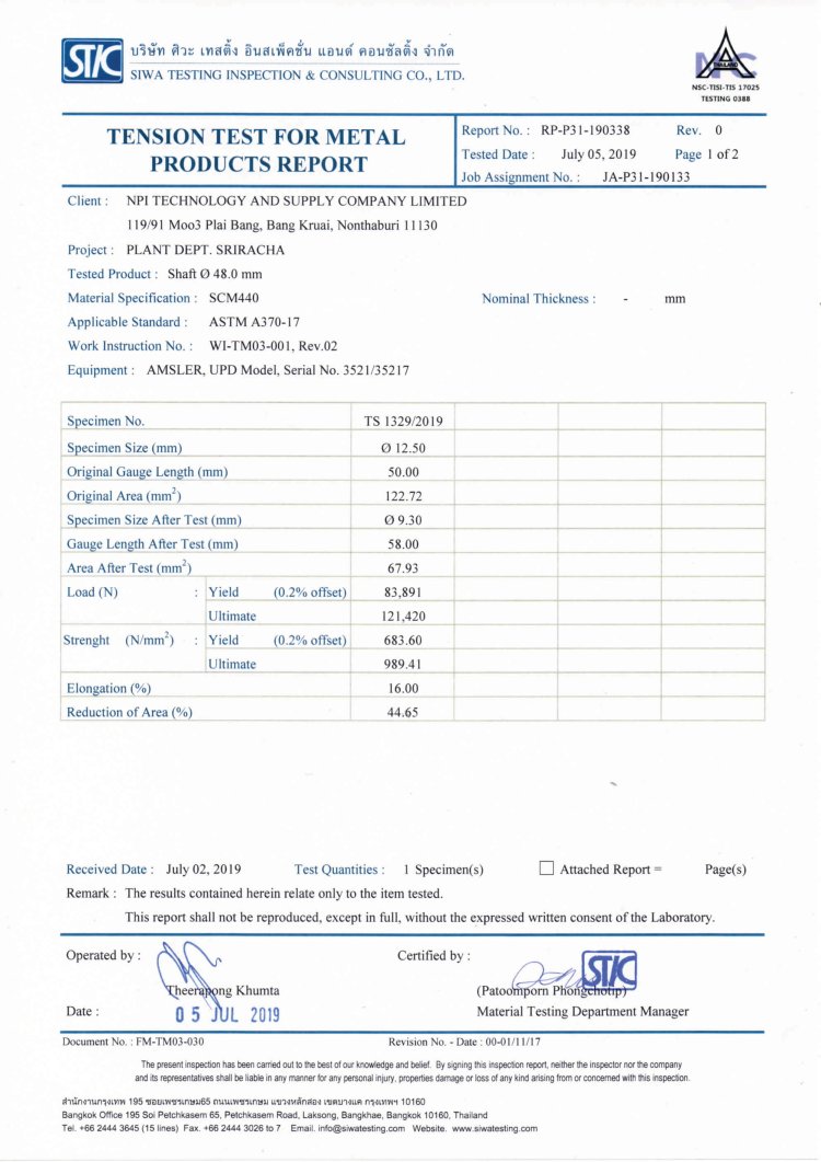 สากล เช่น ASTM, ISO, JIS, DIN, TIS และอื่นๆ เพราะคุณภาพของสินค้าคือสิ่งที่ทางเราให้ความ